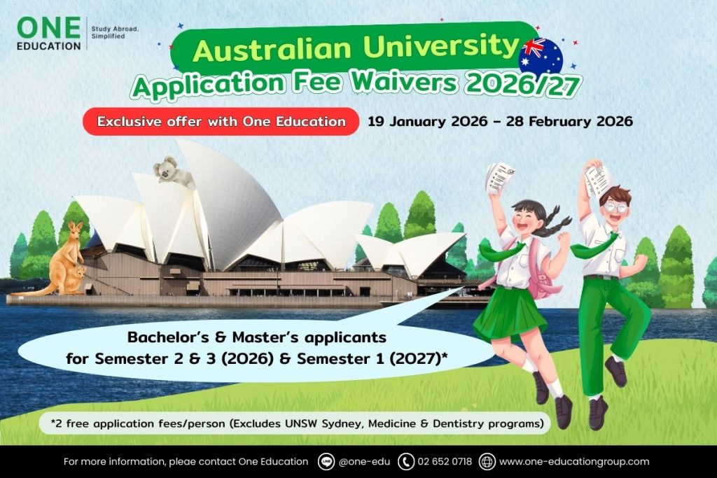 Exclusive with One Education! Apply to Australian universities and get your application fees fully waived.