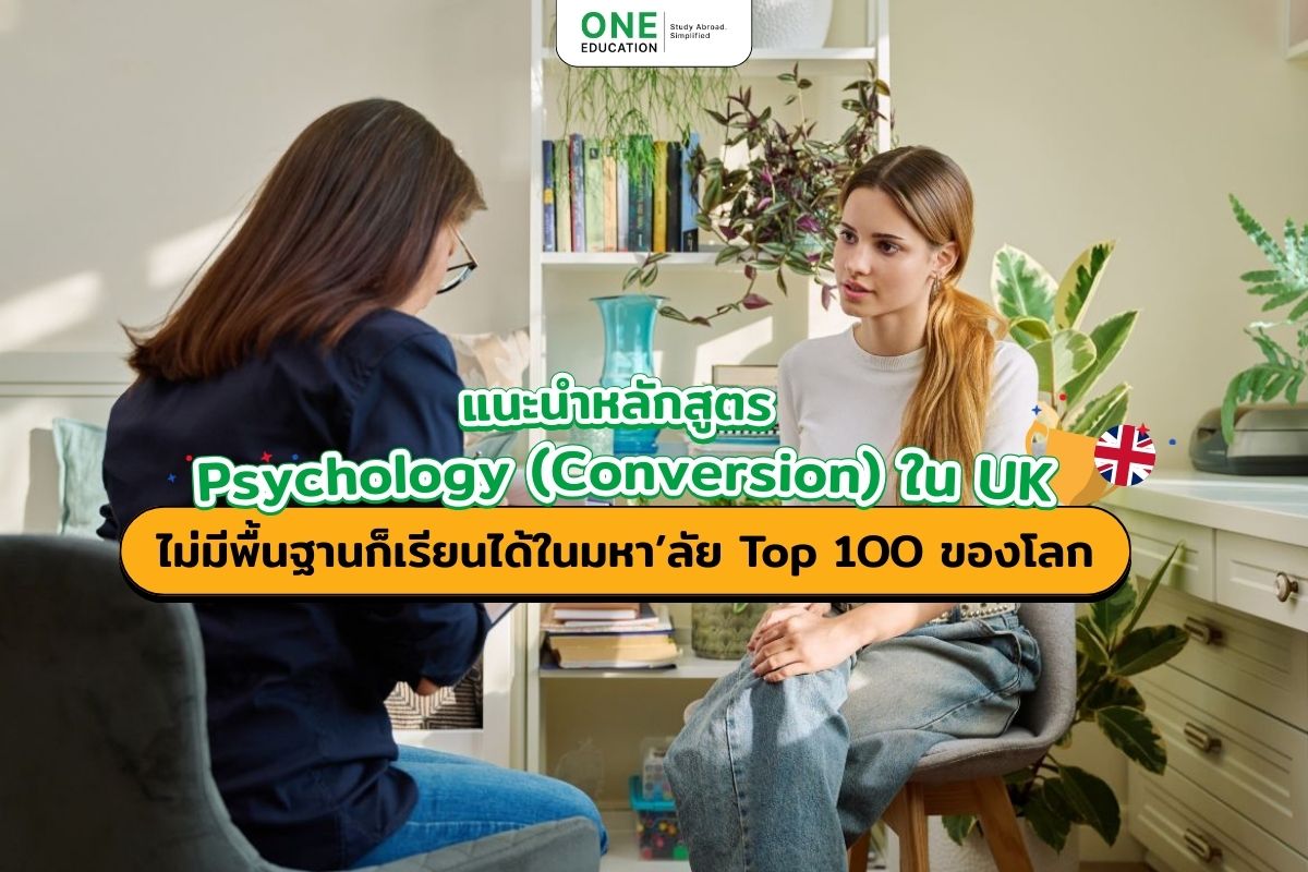 อยากเรียนจิตวิทยาแต่ไม่ได้จบสายนี้มา ถ้าเป็นสมัยก่อนคือค่อนข้างยากเลย เพราะส่วนใหญ่ต้องมี Background มาก่อนถึงจะเรียน Psychology ได้ หรือบางมหาวิทยาลัยยังขอคนที่ต้องเคยมีประสบการณ์ทำงานทางสายนี้มาก่อน หรือต้องผ่านการฝึกงาน หรือผ่านการ Consult มาครบตามชั่วโมงที่กำหนดเท่านั้นด้วยซ้ำถึงจะสมัครสายนี้ได้ แต่ตอนนี้ยุคสมัยเปลี่ยนไป ด้วยความที่ผู้คนหันมาสนใจอยากเรียนทางด้านจิตวิทยาเพิ่มมากขึ้น ด้วยปัจจัยสิ่งแวดล้อมหลาย ๆ อย่าง หรือการออกมารณรงค์ว่าการปรึกษาจิตแพทย์ไม่ได้แปลว่าเราผิดปกติแต่อย่างใด ทำให้การเข้าปรึกษาจิตแพทย์เป็นเรื่องปกติทั่วไป เหมือนการหาหมอทั่วไปในชีวิตประจำวัน หลายคนเลยเริ่มสนใจศาสตร์นี้เพิ่มขึ้นเรื่อย ๆ จนทำให้มหาวิทยาลัยในต่างประเทศหลายแห่งเล็งเห็นถึงความต้องการของตลาดทางด้านนี้มีเพิ่มมากขึ้น บวกกับอาชีพทางสายนี้เมื่อก่อนยังขาดแคลนอยู่เยอะด้วย มหาวิทยาลัยในอังกฤษจึงเป็นอีกประเทศที่ปรับตัวให้เข้ากับเทรนด์โลก ด้วยการปรับหลักสูตร Psychology ให้คนที่ไม่เคยมีพื้นฐานมาก่อนเรียนได้ ซึ่งทำให้ผู้ที่จบสายไหนมาก็ได้สมัครหลักสูตรจิตวิทยาได้ และมหาวิทยาลัยก็จะรับพิจารณาใบสมัคร ไม่ตัดโอกาสผู้สมัคร และไม่ได้จำเป็นว่าต้องเคยมีชั่วโมงการฝึกงานหรือประสบการณ์ทำงานมาก่อน พี่ ๆ One Education เลยจะมาแนะนำมหาวิทยาลัย Top 100 ของโลกที่เปิดสอนหลักสูตร Psychology (Conversion) ที่รับนักศึกษาที่ไม่เคยมีพื้นฐานมาก่อนให้เข้าเรียนได้