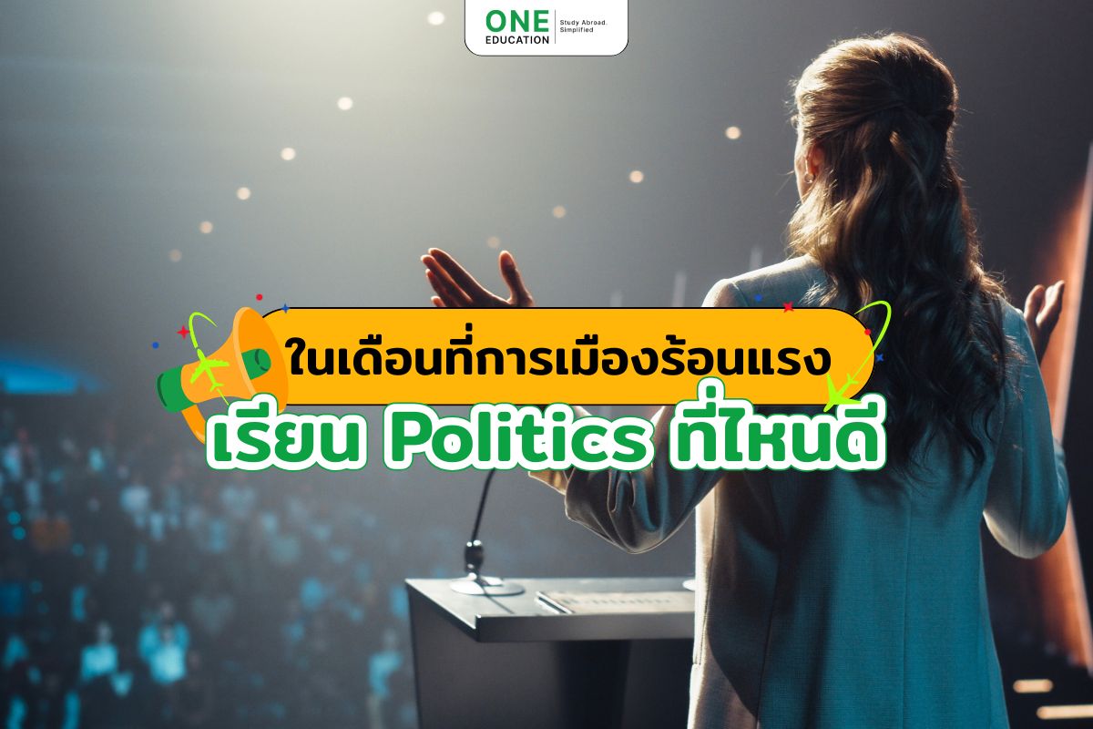 อีกไม่กี่วันก็จะถึงเวลาเลือกตั้งกันแล้วนะคะ อย่าลืมออกไปใช้สิทธิ์ ใช้เสียงกันด้วยน้า เดือนนี้การเมืองบ้านเราก็ร้อนแรงแซงอากาศไปเลย เพราะเป็นช่วงสำคัญของบ้านเมืองเรา ผู้คนเลยหันมาสนใจการเมืองกันอย่างมากมาย ไม่ว่าจะเปิดโทรทัศน์หรือวิทยุช่องไหน ไถมือถือ ดู Social Media ก็เจอแต่ข่าวการเมือง ทำให้คนที่ไม่เคยสนใจก็ต้องหันมาสนใจ บางครอบครัวได้ยินผู้ใหญ่พูดคุยถกเถียงกันจริงจังถึงประเด็นการเมืองต่าง ๆ ทำให้น้อง ๆ หลายคนก็เริ่มสนใจความเป็นมาของการเมืองบ้านเรา รวมถึงต่างประเทศด้วย เด็กยุคใหม่ที่กล้าแสดงความคิดเห็น ทำให้การเลือกเรียนของน้อง ๆ ค่อนข้างหลากหลายมากขึ้น กล้าที่จะเรียนในสิ่งที่สนใจ และกระแสช่วงนี้ก็คงหนีไม่พ้นกับด้าน Politics ที่หลายคนกำลังให้ความสนใจ เพราะอยากที่จะมีความรู้ด้านนี้เพิ่มมากขึ้น พี่ ๆ One Education เลยจะมาแนะนำหลักสูตร Politics ในประเทศออสเตรเลียและอังกฤษ ให้ค่า