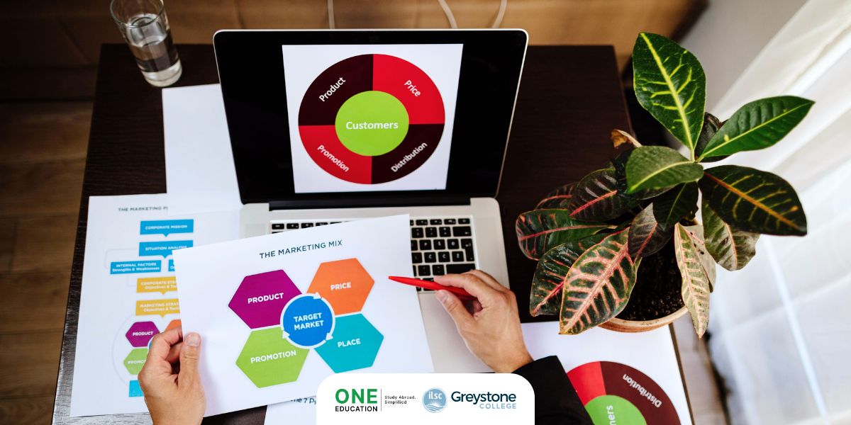 หลักสูตร Marketing ของ Greystone College จะช่วยให้นักเรียนกลายเป็นมืออาชีพด้านการตลาด พร้อมทั้งมีทักษะในการสื่อสาร นักเรียนจะได้พัฒนาทักษะอย่างรอบด้านตั้งแต่งานระดับเริ่มต้นที่เน้นภาคปฏิบัติ ไปจนถึงบทบาทผู้นำในด้านกลยุทธ์การตลาด การสื่อสาร และการกำหนดทิศทางทางความคิดสร้างสรรค์ นักเรียนจะได้เรียนรู้จากผู้เชี่ยวชาญในอุตสาหกรรมใหญ่ ๆ ที่สถาบันเชิญมาบรรยาย และ ได้ทัศนศึกษานอกสถานที่ ซึ่งจะได้เห็นการทำงานในชีวิตจริง นักเรียนจะได้เตรียมพร้อมรับมือหลังเรียนจบว่าชีวิตการทำงานเป็นอย่างไร